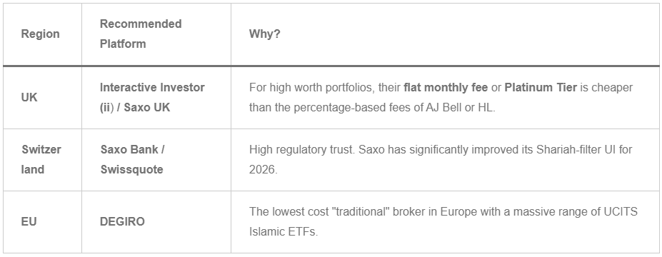 • The Benefit: You aren’t limited to the 5–10 “Islamic ETFs” on the market. You can build a custom portfolio of 50+ Shariah-compliant tech or healthcare stocks.